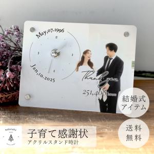 【ウェディングフォトclock】子育て感謝状 アクリルスタンド 両親贈呈品 結婚 写真 ギフト プレゼント おしゃれ 時計 フォト UVプリント データ入稿型商品