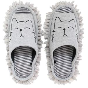 スリッパ モップ ネコ刺繍 グレー GY 洗える 掃除 室内履き キャラクター モップ付き お掃除スリッパ 前開き 沖縄不可 ネコ柄 モップスリッパ