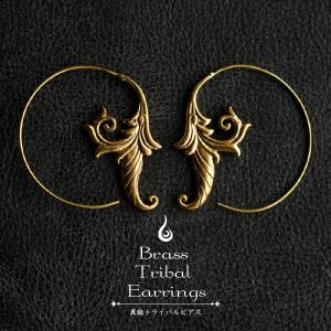 ブラス トライバルピアス 038 真鍮 民族模様 エキゾチック エスニック 植物