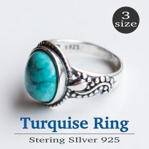 ターコイズリング 014 3サイズ スターリングシルバー925 トライバル ネイティブ トルコ石