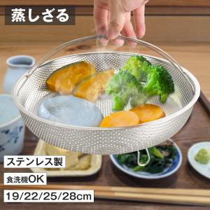 【ステンレス製】蒸しざる 19/22/25/28cm 食洗機対応 フライパンで簡単蒸し料理 ステンレス皿 水切り 揚げ物 フライ 天ぷら から揚げ 大皿 油切り 蒸し野菜