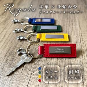 【文字刻印】 本革メタルプレートキーホルダー Regalo 母の日 父の日 ギフト プレゼント 贈り物 FUKULAB.