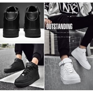ハイカット スニーカー メンズ マジックテープ 厚底 シューズ バッシュ PUレザー ホワイト 白スニーカー 通学