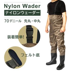 ウェーダー ナイロン ウェダー 釣り ウエスト ウエストウェーダー チェストハイ フェルトソール S M L LL XL おしゃれ カーキ