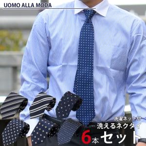 ネクタイ ブランド おしゃれ 6本 セット 洗える ビジネス ポリエステル レギュラータイ ストライプ 小紋 チェック ドット クレスト柄