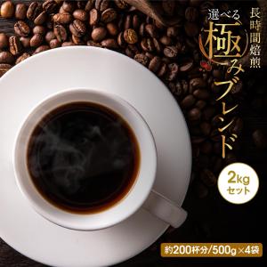 送料無料 コーヒー コーヒー豆 粉 2kg 香り立つ 福袋 200杯 選べる 長時間焙煎 3種類の極みブレンド 500g×4 drip coffee 鮮度の頂点 酸味弱め