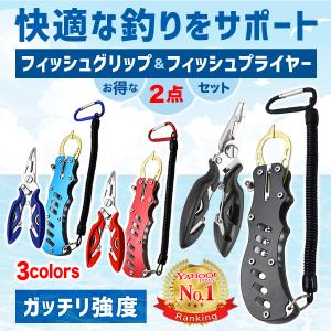 フィッシュグリップ セット フィッシュキャッチャー フィッシングプライヤー 釣り道具 魚掴み 釣り用ペンチグリップ コンパクト ステンレス 釣り具 カラビナ付き