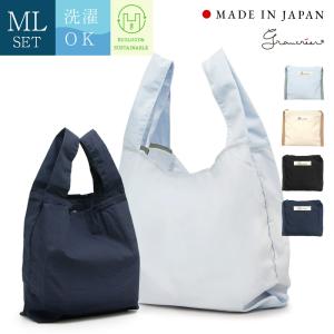 〈M/Lサイズ2点セット〉日本製 エコバッグ 洗える たためる レジ袋型 グランクレエ 折りたたみ コンパクト おしゃれ シンプル 使いやすい 小さめ 大きめ 大容量