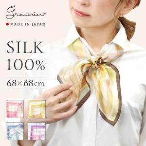 スカーフ シルク100% (幾何学/68×68cm) 日本製正方形 小さめ 薄手 ストール グランクレエ ブランド レディース 制服 オフィス ギフト プレゼント