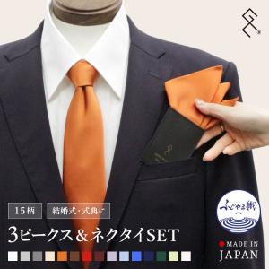ネクタイ&3ピークスセット〈15色〉台紙付きチーフ 無地 日本製 ふじやま織 シルク 結婚式 新郎 披露宴 入学式 卒業 成人式 おしゃれ グランクレエ 送料無料