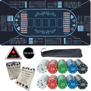 ポーカーセット 8点フルセット カジノセット チップ ポーカーマット トランプ ディーラーボタン ALL INボタン 収納ケース付き (A80cm×40cm)