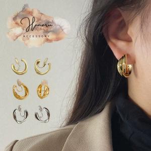 2連 フープ イヤリング ピアス見え 14K 痛くないイヤリング シンプル 大人 おしゃれ ジュエリー ゴールド シルバー 高見え ストーン ケース付き ニッケルフリー