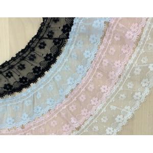 ラッセルレース リボン通し風 両サイドフリル 日本製 約28mm巾 8色 No.YMD-12432RB