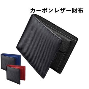 カーボンレザー財布 メンズ 2つ折り 財布 牛革 革 二つ折り 薄い コンパクト コインケース カード収納