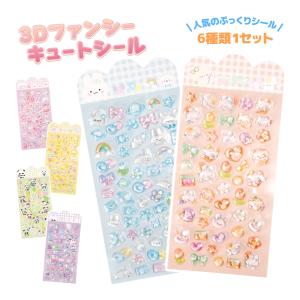 3Dファンシー キュートシール 6種類1セット ぷっくり ぷくぷく 立体 キラキラ 透明 ステッカー シール帳 プレゼント うさぎ くま ねこ パンダ まとめ買い