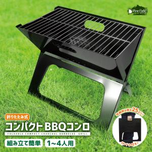 折りたたみ式 コンパクト BBQコンロ Pine Field 3〜4人用 X型 網・取手付き 大人数 炭火式 キャンプ アウトドア バーベキュー 組立簡単 グリル 焚火台 ストーブ