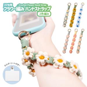 スマホ用 フラワー編み ショルダーストラップ 125cm 3色編み シート付き 選べるカラー iPhone Android スマートフォン 花編み 手首 ペンライト ペンラ 落下防止