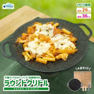 ラウンドグリドル Pine Field 直径36cm 木製ハンドルカバー・トング・収納袋付き 丸型 ハンドル一体型 マルチグリル アウトドア キャンプ BBQ バーベキュー