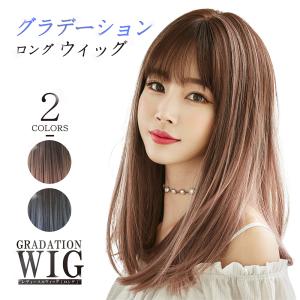 ウィッグ 女性 ロング フルウィッグ かぶるだけ ストレート おしゃれ 安い 自然 白髪 アッシュ 医療用 セミロング グラデーション