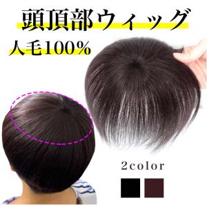 ヘアピース 人毛100% 頭頂部 ウィッグ 自然 ミディアム 30cm ストレート ボリュームアップ 薄毛 脱毛 白髪 部分ウィッグ トップウィッグ かつら つけ毛