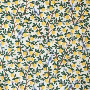 ライフルペーパー 生地 レモングローブ レモン 110cm巾 m単位 布 綿 国産 プリント rifle paper 手芸 かわいい 果物 れもん 小鳥 金プリント 小柄 アメリカ