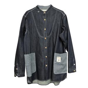 50%OFF!! デニムシャツ ワークシャツ ワンウォッシュ メンズ シャツ 長袖 スタンドカラー 長袖 ブルー 青 デニム おしゃれ CWF定番 大人 おとな 男性