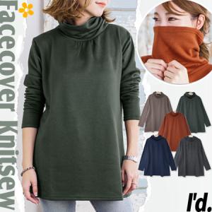 裏起毛 フェイスカバー仕様 ハイネック ゆるトップス チュニック ゆったり身幅 ニットカットソー トップス ネックウォーマー 長袖 秋冬 LL 3L 4L 3691