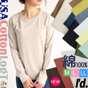 新色 全9色 USAコットン 綿100% 長袖 丸首 Tシャツ カットソー 無地 ロンT トップス レディース インナー 春夏 秋冬 コットン100% M L LLサイズ 9602