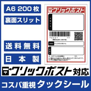 クリックポスト ラベル シール 100枚×2 用紙 A6サイズ(105mm×148mm) スリット入り■タックシールA6 100枚 ×2■