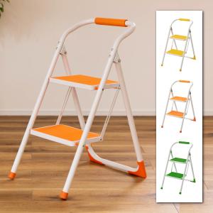 ステップ台 脚立 踏み台 2段 折りたたみ おしゃれ スツール 椅子 イエロー オレンジ グリーン