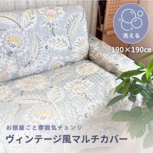 マルチカバー 洗える 花柄 正方形 ソファカバー 190×190cm 2帖 リバーシブル ベッドカバー キルト ウォッシャブル 繊細 ボタニカル 上品 紫 おしゃれ お洒落