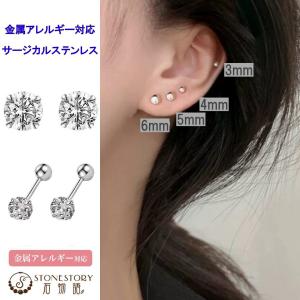 ピアス レディース メンズ ジルコン ステンレス 金属アレルギー対応 2WAY ボールピアス 軟骨ピアス 小ぶり シンプル つけっぱなし 男女兼用