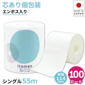 トイレットペーパー シングル 業務用 イトマン 55m 芯あり 1ロール 個包装 100個 紙幅114mm ミシン目あり 10055255