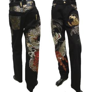 絡繰魂 絡繰り魂 ジーンズ ジーパン デニム 龍 竜 和柄 メンズ 黒 ブラック 254247 MCF