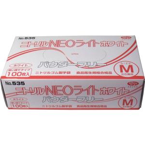 エブノ ニトリル手袋 ネオライト ホワイト No.535 パウダーフリー Mサイズ 100枚入 左右兼用 使い捨て手袋 業務用 家庭用 介護用 作業用