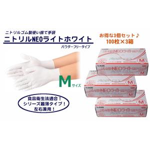 エブノ ニトリル手袋 ネオライト ホワイト No.535 パウダーフリー Mサイズ 100枚入 3個セット 左右兼用 使い捨て手袋 業務用 家庭用 介護用 作業用