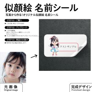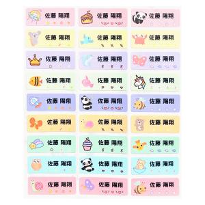 2D似顔絵 お名前シール 女の子用 入園準備 入学グッズ A4 55枚セット 防水 レンジOK 耐水 アイロン不要 キャラクター風 かわいい 名前入り ステッカー