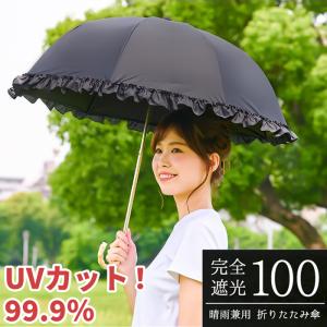 日傘 折りたたみ傘 フリル 2段 完全遮光 晴雨兼用 軽量 UVカット 撥水加工 遮光率100% 遮熱 日焼け対策 レディース 女性