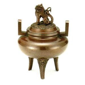 香炉 珠玉型 青銅製 山吹色 桐箱 高さ12×幅11cm o54-04
