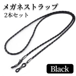 メガネストラップ 2本セット メガネチェーン PUレザー ブラック ずれ落ち防止 サングラス 眼鏡 ストラップ シンプル オシャレ