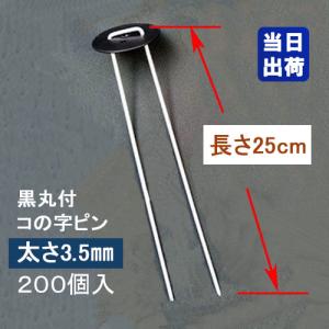 防草シート固定メッキピン 黒丸付 25cm 太さ4mm 200個入 コ型止めピン コ型ピン uピン杭 U字ピン 抑え杭 押さえピン ヘアピン杭 農用 人工芝 マルチ シート