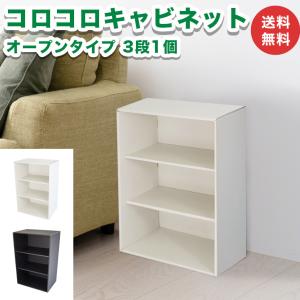 コロコロキャビネット オープンタイプ 3段 1個 カラーボックス 完成品 ダンボール家具 段ボール家具 収納 軽い 組立不要 ラック 白 黒 ホワイト ブラック
