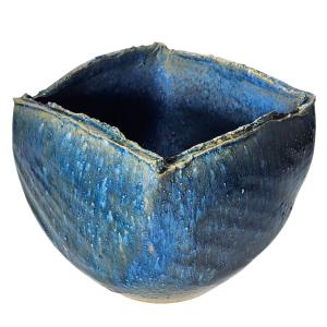 青ガラス四角花器 7号 (信楽焼・花瓶・花入れ・花器・壺・壷・水盤・B007-07)
