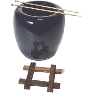 生子火鉢型灰皿セット 6号(火箸・五徳・井ゲタ付き)(信楽焼・陶器・暖房・火鉢・ひばち・手作り・囲炉裏・B026-01)