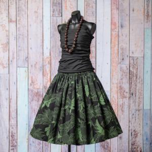 パウスカート ウル バナナリーフ 黒 ブラック 75cm丈 フラダンス
