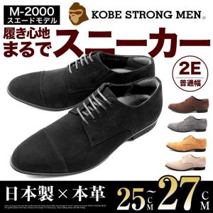 神戸ストロングメン ビジネスシューズ スエード 本革 日本製 ストレートチップ メンズ カジュアル ビジカジ 革靴 2EE 普通幅 軽量 紳士靴 神戸 M-2000