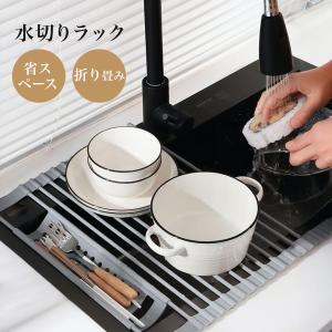 水切りラック 折りたたみ シンク上 ステンレス芯 抗菌 錆びない 食器水切りかご コンパクト まな板ややかんも置ける シリコントレイ付き 台所用 食器乾燥ラック