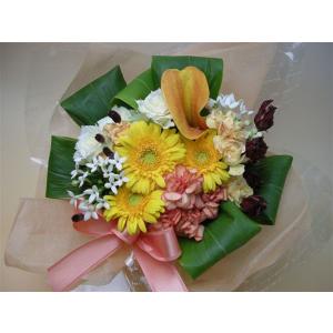 誕生日 御供 生花 供 ペット 祝 生花 アレンジ やさしい黄色オレンジのおまかせアレンジ