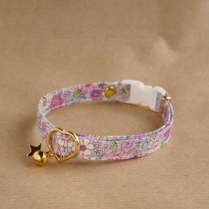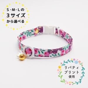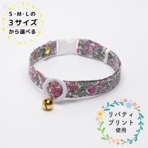 猫用 首輪 ハンドメイド セーフティバックル使用 リバティプリント使用 3サイズから選べる ★ リバティプリントの首輪(ウィルトシャー・ピンク) ★