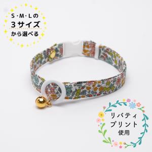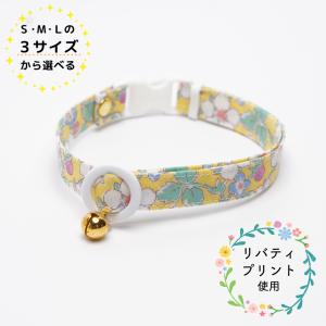 猫用 首輪 ハンドメイド セーフティバックル使用 リバティプリント使用 3サイズから選べる ★ ワイルドベリーの首輪(イエロー) ★